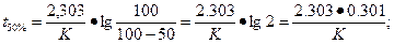 Для расчета периода полураспада лекарственного вещества (т.е. уменьшение его количества наполовину) используется уравнение: