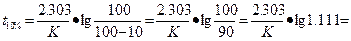 Для расчета времени, в течение которого количество вещества уменьшается на 10%, применяется равенство: