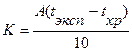 Величина А – коэффициент скорости химической реакции. В табл. 3 приведены значения коэффициента соответствия (К) для различных значений разности температур эксперименталь-ного и обычного хранения.