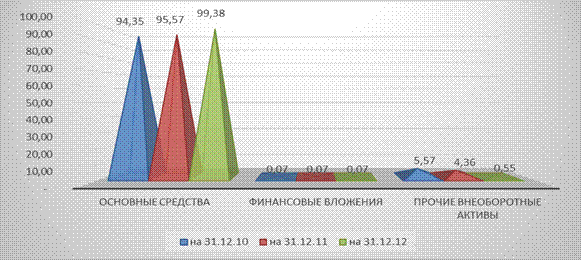 Рис. 1.1. Структурная динамика внеоборотных активов ООО «Инструмент» в 2010-2012 гг.