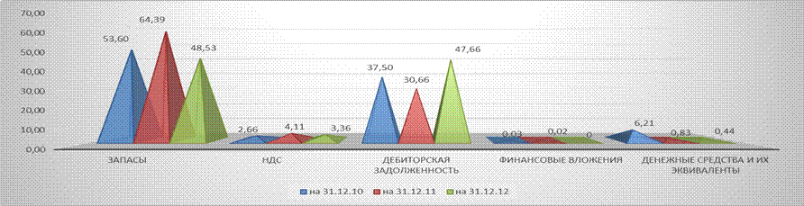 Рис. 1.2. Структурная динамика оборотных активов ООО «Инструмент» в 2010-2012 гг.