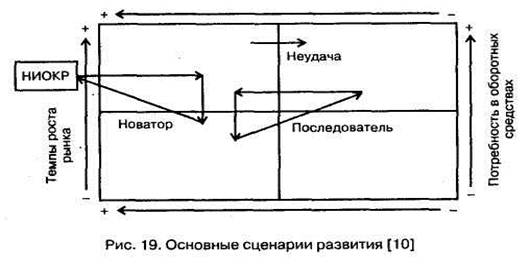 • «Траектория товара». Инвестируя в НИОКР средства, получаемые от «дойных коров», предприятие выходит на рынок с принципиально новым товаром, который занимает место звезды.