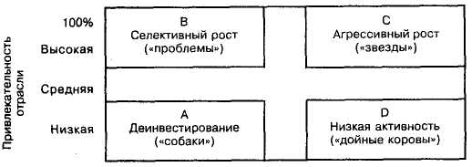 • деинвестировать и уйти с рынка (или рыночного сегмента) с низкой привлекательностью, где предприятие не может добиться существенного конкурентного преимущества.