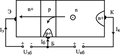 | Рис. 7.5 Инверсный режим транзистора n-p-n-структуры |