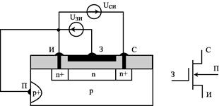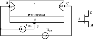 | Рис. 3.1. Полевой транзистор с управляющим p-n-переходом |