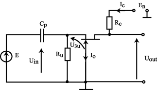 не пропускает постоянное напряжение. Она осуществляет развязку по постоянному току между усилителем и источником внешнего сигнала E.