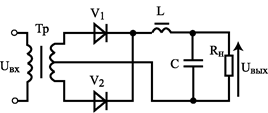 | Рис. 22.1. Двухполупериодный выпрямитель |
