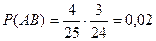 Пример 2.4. Среди 25 электролампочек 4 нестандартные. Найти вероятность того, что взятые 2 лампочки окажутся нестандартными.