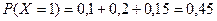 р 1 = 0,1 + 0,2 + 0,15 = 0,45 и р 2 = 0,3 + 0,1 + 0,15 = 0,55.