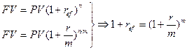 Эффективной называют ставку сложного процента при начислении процентов один раз в год, доставляющую тот же результат, что и номинальная ставка при начислении процентов m раз в год.