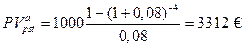 Какую сумму нужно положить в банк сегодня, чтобы в течении 4 лет оплачивать учебу в ВУЗе в конце каждого года по 1000 €, при условии, что банк предлагает 8 % сложную ставку и, при снятии последней 1000 €, счет будет закрыт.