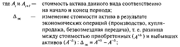 Dдр - другие изменения стоимости актива, связанные с деятельностью или явлениями, не относящимися к экономическим операциям, например, открытие месторождений полезных ископаемых, стихийные бедствия и т. п. Изменение стоимости определяется, как и в предыдущем случае, и отражается в данном уравнении с учетом знака;