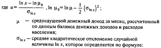 Для нахождения частот распределения населения по доходам используется функция логарифмически нормального распределения, которая имеет следующий вид: