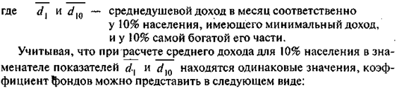 коэффициент фондов определяемый как соотношение между средними доходами населения в десятой и первой децильной группах: