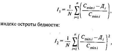 Для анализа динамики уровня бедности в стране могут быть исчислены два показателя: индекс глубины бедности (/,) и индекс остроты бедности (1г).