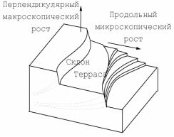 6. Если поверхность подложки параллельна плоскости низкого индекса, то развиваются сплошные слои, в противном случае поверхности слоев перекрываются и образуются террасы (рис. 4.3).