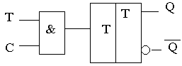 Поскольку эта формула совпадает с аналитической записью переключательной функции сложение по модулю два, то Т -триггер часто называют триггером со счетным входом Т, а входной сигнал, поступающий на вход Т, счетным сигналом. На практике кроме асинхронного Т -триггера, работу которого мы рассмотрели, используют так же и синхронный Т -триггер, который в отличие от асинхронного меняет свои состояния только при Т = 1 и С = 1. Если хотя бы один из этих сигналов равен нулю, то триггер сохраняет свое состояние. Вход С называют входом синхронизации.