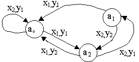В автомате Мили X a = { x 1, x 2}, Y a = { y 1, y 2}, A a = { a 0, a 1, a 2}.