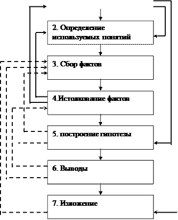 Этап 5. Построение гипотезы. Рабочие гипотезы, выдвигаемые на этом этапе, обычно связаны с какими-либо конкретными вопросами, отвечая на которые можно про-верить сами гипотезы. Построение гипотезы, взятое в широком смысле, всегда присуще любой исследовательской работе. В самом начале исследования, когда вырабатывается общий план, мы исходим из определенных предположений (или гипотез) о том, какие факторы, вероятно, играют важную роль и какие почти определенно не имеют отношения к делу. Аналогичными гипотезами мы руководствуемся при сборе и истолковании фактов, формулировании выводов и предложений.