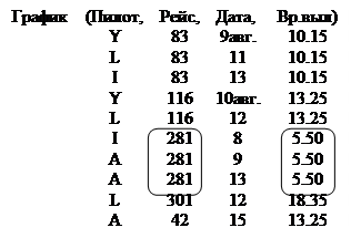 | График | (Пилот, | Рейс, | Дата, | Вр.выл) |