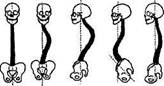 На рисунках представлены типы осанки и изгибов позвоночника. Отклонения от нормы влияют не только на внешний вид танцоров, но, прежде всего, исключают, как ранее указывалось, реализацию основных технических приемов танца. Если в раннем возрасте неокрепший позвоночник испытывает значительные нагрузки, то при неоднократном выполнении одних и тех же движений спортсмен может получить травму.