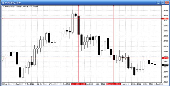 Предположим, Вы ожидаете повышения стоимости американской валюты против основных мировых валют на рынке Forex и принимаете решение 31.10.2011 продать евро против доллара по курсу 1.4105.