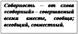 Идея «соборности» раскрывалась в русской философии не только с позиции анализа и обобщения соборного опыта Церкви, но и в контексте основанного на свободном единении людей идеала социальной жизни, который соединялся с образом цельной личности. Самоподавляющему индивидуализму западного типа К.С. Аксаков [1] и его единомышленники противопоставили доминирующее в крестьянской жизни «хоровое начало», поскольку, по их мнению, личность в общине не подавлена, но «свободна в ней, как в хоре». Такое «хоровое начало», полагали они, сохраняет своеобразие личности, дает ей простор и, не подавляя, включает в то же время в целое, как в хоре.