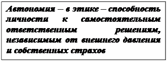 Третий уровень – автономная мораль. Моральные нормы и принципы становятся собственным достоянием личности, т.е. внутренними. Поступки определяются не внешним давлением или авторитетом, а своей совестью. Сначала появляется ориентация на принципы собственного благополучия, принятые на себя обязательства перед обществом (пятая стадия), потом – на общечеловеческие этические принципы (шестая стадия). Высшей ценностью признается жизнь человека.