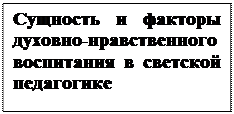 Таким образом, общим для светской и православной педагогики является признание духовной составляющей личности, признание свободы личности в самопознании, саморазвитии и самосовершенствовании. А особенным – природное и смысловое значение понятия духовности, соотнесение духовной и нравственной составляющей в структуре личности и, главное, источник развития личности.