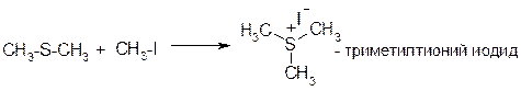 Атом серы в тиоэфирах – центр основности и нуклеофильности, при взаимодействии с галогенопроизводными тиоэфиры образуют соли триалкилтиония: