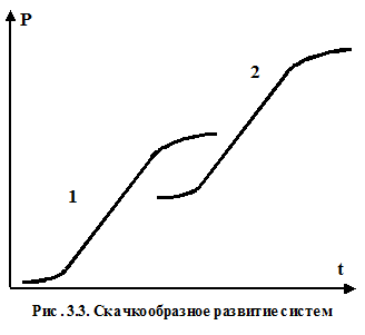 На смену системе 1 приходит система 2. Скачкообразное развитие продолжается - появляются системы 3, 4 и т.д. (рис. 3.4).