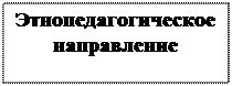 В этнопедагогическом направлении человек рассматривается как часть природы и акцент делается на признании врожденного характера всех его качеств; смысл жизни понимается как достижение гармонии с природой. Целью его является выживание рода на основе интуитивно и эмпирически найденных путей гармонизации внешнего и внутреннего миров личности [2, с. 64]. В рамках данного направления у личности нет возможности быть субъектом собственного развития, т.к. его сторонниками культивируется определенная зависимость человека от внешних сил, суть которых не всегда понятна. Их надо «задабривать», совершая определенные ритуалы. На первый план выдвигается коллективный способ существования, при котором проще противостоять внешней стихии, но при котором индивидуальное развитие подчинено коллективному. Вместе с тем в основе воспитания лежали и христианские понятия: земля – Божия, скотина – Божья тварь, лес, вода, звери, рыбы – все создано Творцом, поэтому исключено небрежное или хищническое отношение при использовании этих даров. Семья считалась малой церковью, отец семейства (батюшка) отвечал перед Богом и людьми за всех чад и домочадцев. Он обязан был доносить смысл нравственных проповедей, которые произносились по воскресеньям в Церкви, до своей семьи. Большое значение придавалось соблюдению постов, развивающих внутреннюю, нравственную дисциплину, укрепляющих силу воли, развивающих умение ограничивать себя, соблюдать запрет [6, с. 4].