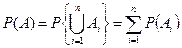 Если А1, А2, …, Аn – несовместные события и А – сумма этих событий, то вероятность события А равна сумме вероятностей событий А1, А2, …, Аn: