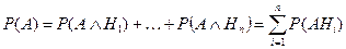 Поскольку событие А может появиться с одной из гипотез H1, H2, … Hn, то А= АH1 ˅АH2 ˅…˅ АHn, но H1, H2, … Hn несовместны, поэтому