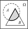 | Пересечение множеств A и B; множество точек, входящих и в А, и в B | Событие, состоящее в том, что произошло и A, и B |