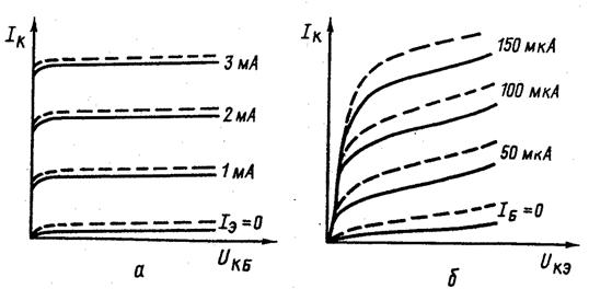 Зависимость выходных статических характеристик транзистора от температуры: а – в схеме ОБ; б – в схеме с ОЭ