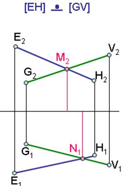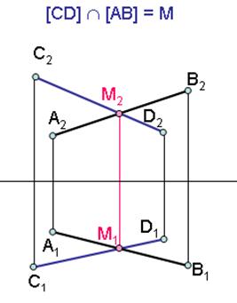 Проекции точек пересечения проекций прямых никогда не находятся на одной линии связи.