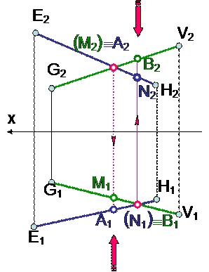 На рис. изображены две пары конкурирующих точек: фронтально конкурирующие(МºА) и горизонтально конкурирующие точки (NºB).