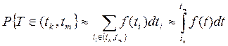 Аналогично вероятность попадания наработки T в интервал [ tk , tm ] равна:
