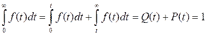 Очевидно, что Q(t) представляет собой площадь под кривой f(t) слева от t, а P(t) – площадь под f(t) справа от t. Поскольку все, полученные при испытаниях значения наработок лежат под кривой f(t), то