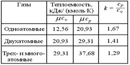 3) удельную мольную теплоемкость mс, отнесенную к одному киломолю и измеряемую в Дж/ (кмоль∙К).