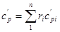 Аналогично мольная теплоемкость смеси равна сумме произведений объемных долей на мольные теплоемкости составляющих смесь газов: