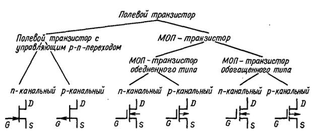 Аналогично делению биполярных транзисторов на р-n-р- и n-р-n-транзисторы