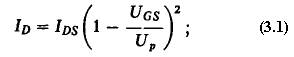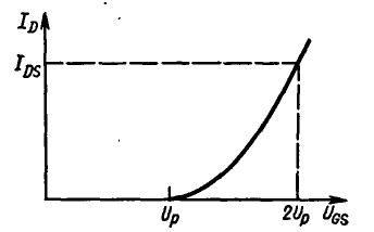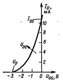 Из выражения (3.1) следует, что ток стока при UGS = Up должен равняться нулю.