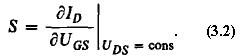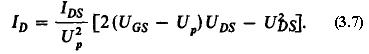 было бы определить значение UGS, при котором значение тока стока становится равным нескольким микроамперам. Полученное таким образом значение не всегда будет удовлетворять равенству (3.1), поэтому удобнее вычислить величину