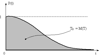 Из (4.8) следует, что средняя наработка до отказа геометрически интерпретируется как площадь под кривой P(t) – рис. 4.1.