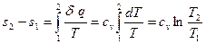 т.е. зависимость энтропии от температуры в изохорном процессе при cv = const имеет логарифмический характер.