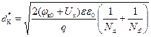 Зонная диаграмма бездрейфового биполярного транзистора n - p - n - типа, включенного по схеме с ОБ в активном режиме, представлена на рис.9. Источник питания U э включен, <−> к эмиттеру, <+> к земле; при этом в эмиттерном переходе возникает дополнительное электрическое поле E э*, которое частично компенсирует поле E э. Кроме того, энергия электронов в области эмиттера возрастает, уровень Ферми поднимается, потенциальный барьер уменьшается Ψ э= q (j э0− U э), толщина перехода