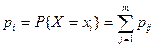 Распределение вероятностей координат вектора – суммирование вероятности { pij } по соответствующему индексу: