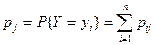 Закон распределения дискретного случайного вектора (X, Y) есть конечное или счетное множество всех возможных значений случайного вектора (X, Y)=(xi, yj) с указанием соответствующих вероятностей:
